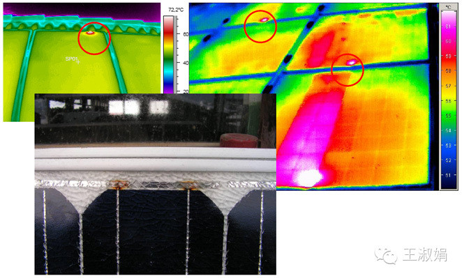 下图为热斑现象的红外照片(图片来自于TUV-Rheinland),红点部分为产生热斑处。