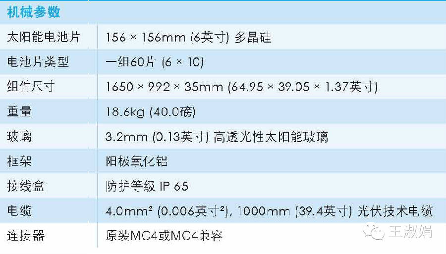 电压分开路电压和MPPT电压,温度系数分电压温度系数和功率温度系数。在进行串并联方案设计时,要用开路电压、工作电压、温度系数、当地极端温度(最好是昼间)进行最大开路电压和MPPT电压范围的计算,与逆变器进行匹配。