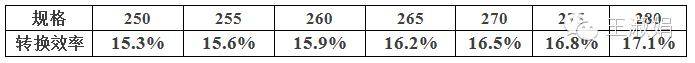以常用的60片的多晶硅光伏组件为例,不同规格的转换效率如下表。